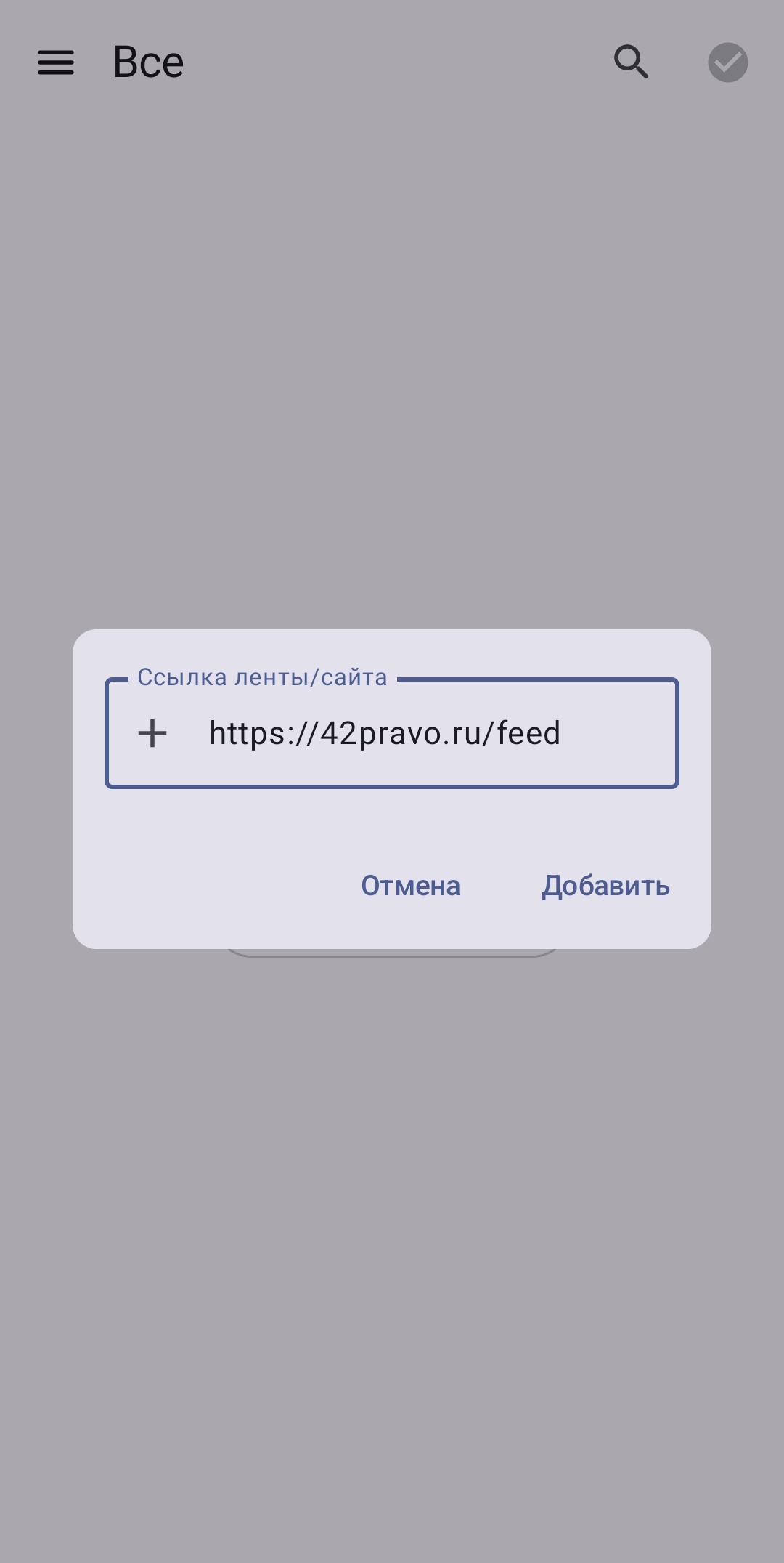 3. В приложении нажмите значок "+", "Добавить ленту" или что-нибудь аналогичное и вставьте ссылку.